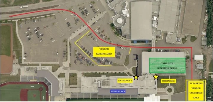 RV Parking will be available on-site. A fee of 60$ for the weekend will be in place. Access to showers, FACILITIES and a water park inside McDonald Island park. sites are not serviced.